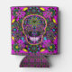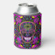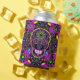 Um crânio de açúcar em néon cor-de-rosa e fundo de flores.