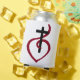 Cruz Cristã Simples, esta design design-Cristã apresenta uma Cruz Cristã simples com um coração vermelho, em vermelho e preto.