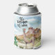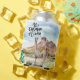 Lama bonitinho com uma flor rosa nos ouvidos no deserto com cactos, uma montanha e grama ao redor. Um céu azul de aquarela está acima do Llama e há a descrição engraçada "No Drama Llama"