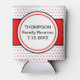 Coolers personalizados para reunião de família para todos. Personalize com o sobrenome da sua família em letras maiúsculas e data do evento. Pontos geométricos vermelhos em fundo branco. A parte de trás é de cor vermelha sólida. Padrão divertido de verão para encontros com familiares e amigos. Arte e design originais © TamiraZDesigns.