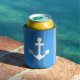 Design com temas náuticos com decoração de âncora em fundo de madeira de cinza e azul listrado. Por favor, note que isto não é feito de madeira, é um impressão gráfico de madeira.