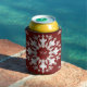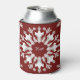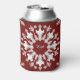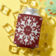 Enfeites de natal vermelho com detalhe característico de floco de neve branco e intricado, rodeado por decorações festivas e um cenário de neve. Perfeito para comemorações e decorações festivas