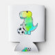 Esboço t-rex bonito jogando futebol. Versão de aquarela digital. Ideia de presente para crianças que amam futebol.