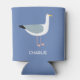 Uma gaivota atada ao lado do oceano azul. Perfeito para aqueles que amam aves náuticas e a costa. Alterar ou remover o nome a personalizar. Arte original de Nic Squirrell.