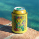 A design do Sol por Percentum, psicodélica, numa lata de cerveja mais fria.