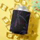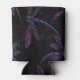 Cinco libélulas roxas fabulosas e píxeladas azuis flertando sobre um fundo preto mosqueado.
