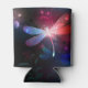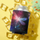 Luminosa, voadora, libélula vermelha, com asas transparentes e detalhadas sobre fundo escuro, noturno, luminoso com plantas tropicais e vagalumes. libélula vermelha.
