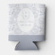 Modern soft dusty blue wedding favor can cooler for special ocations like wedding, bridal shower, graduation or birthday celebration. Features a chinoiserie floral pattern of peonies for timeless sophistication. Monogram in a wedding crest.