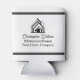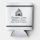 This professional realtor can cooler is custom made with your real estate company name under the modern cursive script for an open house. These trendy minimalist white and black realty business promotional items feature a house logo image that can be kept or replaced with your corporate logo for home builder or realty agent company marketing.
