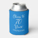 Elegante Blue Cheers to 70 Year 70 Birthday Can Cooler Special elegant Blue Aniversário Can Cooler especialmente projetado para seus amigos que estão transformando o maravilhoso marco de 70! Esses refrigeradores de latas personalizados adicionam o toque perfeito às configurações de mesa da sua festa de aniversário. Planeje sua festa com mais festas de aniversário da nossa loja! Seus amigos ou família vão adorar uma festa de aniversário azul legante!