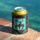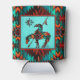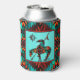 Keep Your Favorite Beverage Cool in this "One of a Kind" Indian End of the Trail Can Cooler! It Features a Southwest Native American End Of The Trail Indian and Horse Under the Sun on a Turquoise Background...Surrounded by a Southwest Border in Turquoise, Orange & Black!