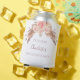 Uma cooler para festa de despedida. Fundo branco. Decorado com grama pampas e flores rosa e dourado-rosado. Personalize e adicione uma data, nome. O nome é escrito em cor dourado-rosado escuro com uma fonte moderna de letra cursiva.