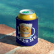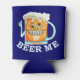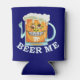Esta espuma engraçada de cerveja pode arrefecer design tem uma caneca de desenho animado com as palavras "Beer Me". É uma design engraçada para qualquer amante de cerveja. O plano de fundo personalizável é azul. O design repete-se de ambos os lados.