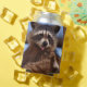 Fotografia animal fantástica para personalizar com uma legenda divertida. Um guaxinim bonitinho quase jogando a língua para fora.