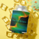 Uma imagem fractal azul, verde e laranja com estrelas no fundo. Adicione seu próprio texto.