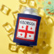 Um design gráfico da bandeira do Estado da Geórgia em um refrigerador de latas.