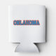 Este personalizado pode resfriar um design que exibe a palavra "Oklahoma" em uma fonte impressão com letras azuis aqua com contorno cor laranja neste tema de estilo de camisa do orgulho de estado personalizado. Nossos resfriadores ajustados latas padrão de 12 oz e são personalizados em todos os lados, inclusive na parte inferior, e feitos com espuma de poliuretano de célula aberta de alta densidade e colapsível para armazenamento fácil.