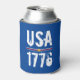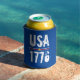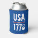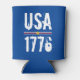 EUA e 1776 em uma fonte única são impressos em branco neste azul pode resfriar e realçados com listras brancas e vermelhas e uma estrela dourada. CORRESPONDENDO a itens na nossa loja.