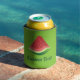 Corte de melancia vermelha. Cor de fundo personalizada. Texto personalizado de ambos os lados.