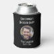 Um divertido cooler de foto do noivo que você pode dar aos rapazes, incluindo os padrinhos, como um favor de casamento da sua saída de despedida de solteiro. Um brinde ao futuro noivo! Personalize com uma foto do noivo, o nome do noivo e os detalhes da despedida de solteiro.
