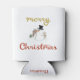 "Feliz Natal" em cor falsa de ouro e escrita vermelha com ilustração de um centro de neve.