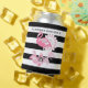 Porta-lata Festa de aniversário Flamingo de Stripe Preta e Br