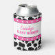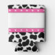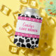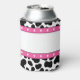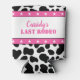 Celebre com as noivas com estilo com essas mangas de lata personalizadas. Elas apresentam um padrão divertido de couro de vaca preto e branco com acentos de estrelas rosa e branco e uma mensagem personalizada "seu último rodeio" em letras rosas.