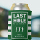 Celebre o último swing do noivo antes do anel com este envoltório de lata com tema de golfe com listras verdes e brancas para festa de despedida de solteiro. O design apresenta a frase "Último buraco que ele acertará", tornando-o uma escolha divertida e adequada para uma excursão de golfe ou fim de semana de despedida de solteiro. Perfeito para manter as bebidas geladas enquanto brinda ao noivo, este envoltório de lata adiciona um toque lúdico à celebração. Personalize com o nome do noivo e detalhes do evento para uma lembrança personalizada!