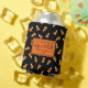 Boo! Adicione um apelo personalizado à sua festa do Dia das Bruxas com a nossa lata personalizada mais fria, apresentando um padrão de milho doce em laranja festivo e amarelo num fundo preto assustador. Personalize com os detalhes da festa do Dia das Bruxas e o ano em um elemento de crachá laranja correspondente.