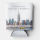 Este elegante cooler para latas para o fim de semana de aniversário aquarela de Nova York pode ser personalizado com suas informações em tipografia sofisticada. Criado por Thisisnotme©