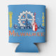 Can Cooler with flag of city of Milwaukee, Wisconsin; light blue flag with city panorama