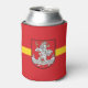 Can Cooler with design with flag of Vilnius, capital city of Lithuania; red flag with yellow stripe and coats of arms with two golden lions holding a shield in the center