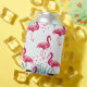Porta-lata Flamingo tropical e folhas, padrão de verão.