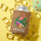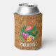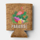 Um flamingo rosado exótico, flores tropicais e folhas em um padrão de impressão de wicker tecido com a palavra PARADISE, esse design faz refrigeradores de lata de na moda verão. CORRESPONDENDO a itens na nossa loja.