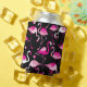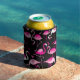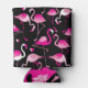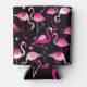 Porta-lata flamingos cor-de-rosa, padrão sem costura escuro.
