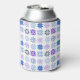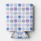 Este refrigerador tem uma design de inverno com diferentes flocos de neve em blues e roxas em filas.