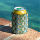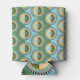 Porta-lata Flores dobradas: padrão retroazul-verde.