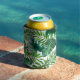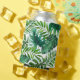 A Tendy tropical pode resfriar a design, apresentando ilustrações de monstera, bananeira e folhas de palma em fundo listrado.