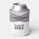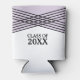 Trendy and chic Elegant Deco Graduation Can Cooler com um moderno design de arte de cruzamento com riscas e riscadas com um fundo lavanda. Este design geométrico clássico e sofisticado é fácil de personalizar com os detalhes da festa de formatura. Para obter mais opções de personalização, clique no botão Personalizar Ti.