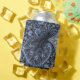 Este produto apresenta uma arte fractal abstrato em cores azul escuro e preto.
