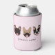 Ilustração de três cachorros de Bulldog franceses de diferentes cores.
