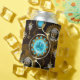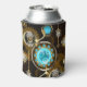 Lentes de turquesa com relógio antigo com engrenagens de latão e chaves de ouro sobre fundo enferrujado e marrom. Estilo Steampunk.