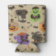 O refrigerador de padrão de colheita do Halloween que inclui crânios, abóboras e mais para adicionar à sua cozinha do Halloween, bebidas enlatadas e coleções de bebidas alcoólicas.