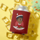 Consegue resfriar com uma ilustração de uma garota afro-americana sorridente com um penteado afro-americano, a menina está vestindo uma fantasia de Santa Cláusula com um chapéu vermelho e segurando um presente; em um círculo vermelho sobre um fundo vermelho, com um modelo de texto editável para seu nome ou mensagem
