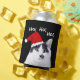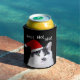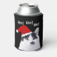 Fotografia bonita de um gato ranzinza vestindo um chapéu de Papai Noel em koozie de Natal.