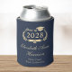 Brinque ao formando de sua festa de formatura com este elegante azul escuro pode resfriar apresentando "Classe de" em uma ilustração clara de jato de louros que incorpora um boné de formando e diploma, o nome do formando em um roteiro de ouro na moda e o nome da escola em uma tipografia moderna de ouro claro.