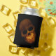 Grande crânio de ouro de sorver na frente e atrás com fundo preto. Dia das Bruxas.