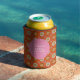 Porta-lata Groovy Retro Flores dos Anos 60 Laranja Rosa Chá d