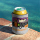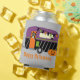 O gráfico do Dia das Bruxas divertido retro o estilo rv trailer em cores sazonais com abóbora, teia aranha e bandeiras de bunting sobre a janela, em fundo de cinza com uma camada de texto personalizável laranja "Feliz Dia das Bruxas".