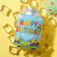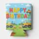 Happy birthday construction builder theme with little builder vehicles and hat.